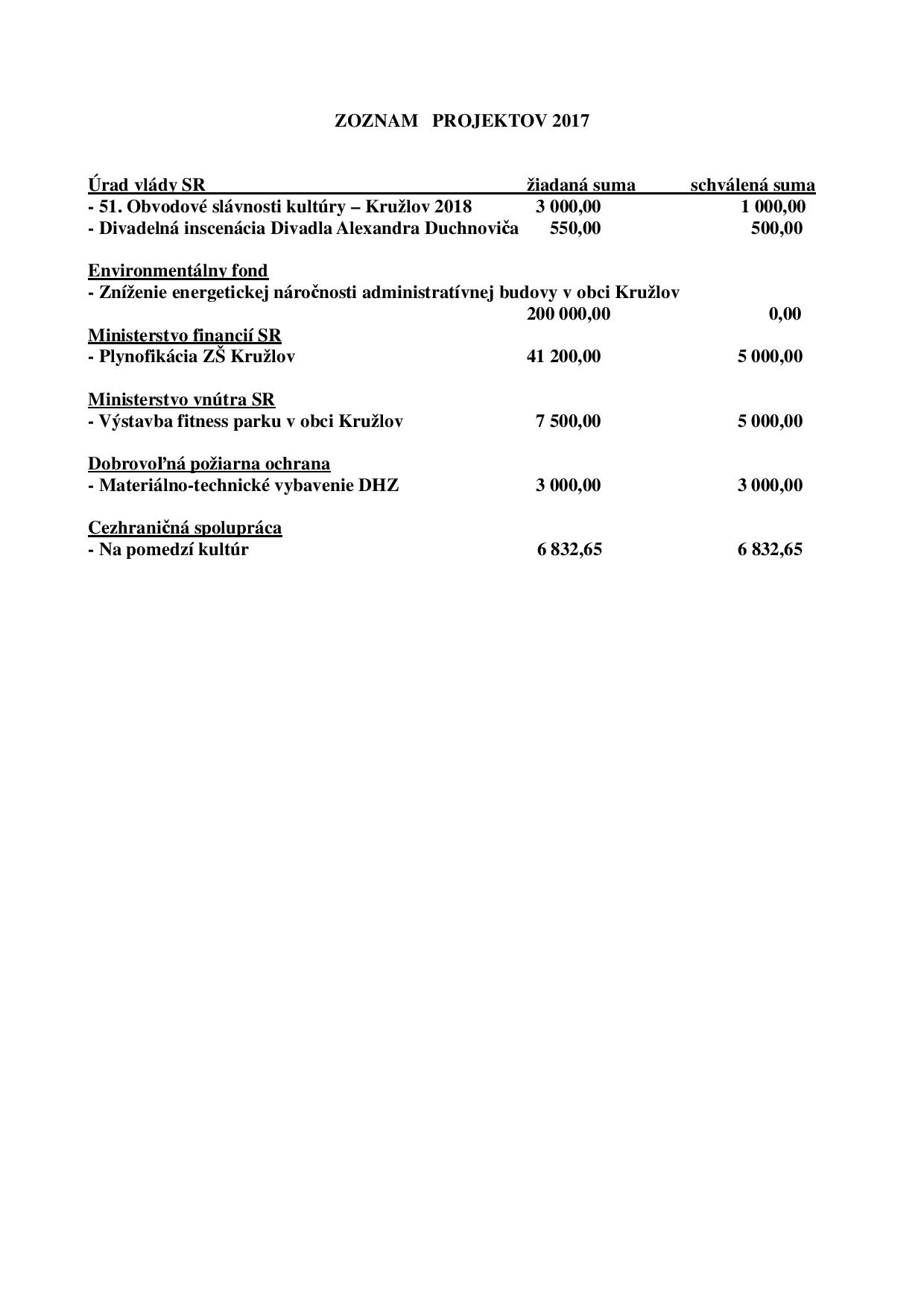 Obecným úradom Kružlov v roku 2017: