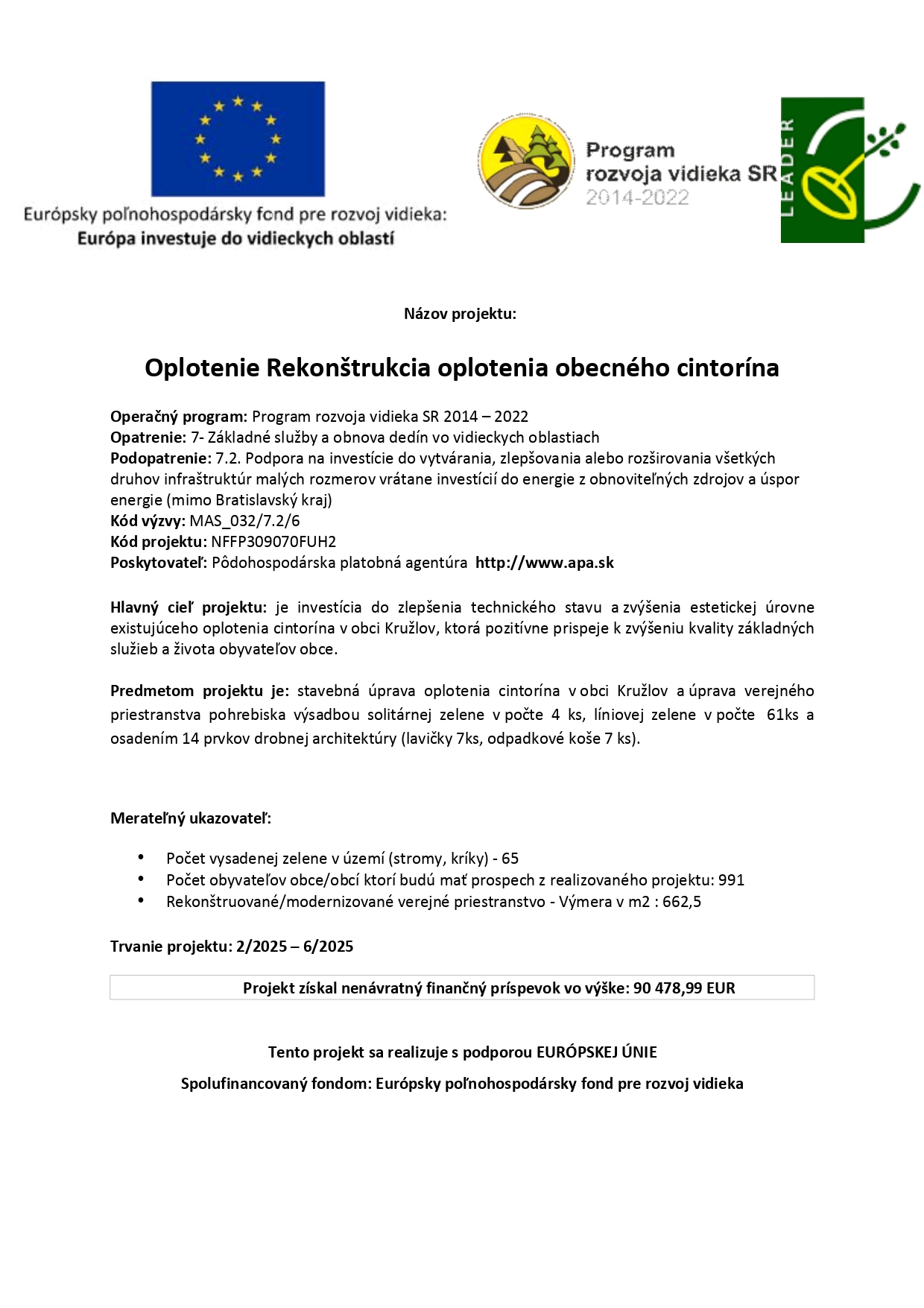 Dotácia na opravu MK: 827,86 €