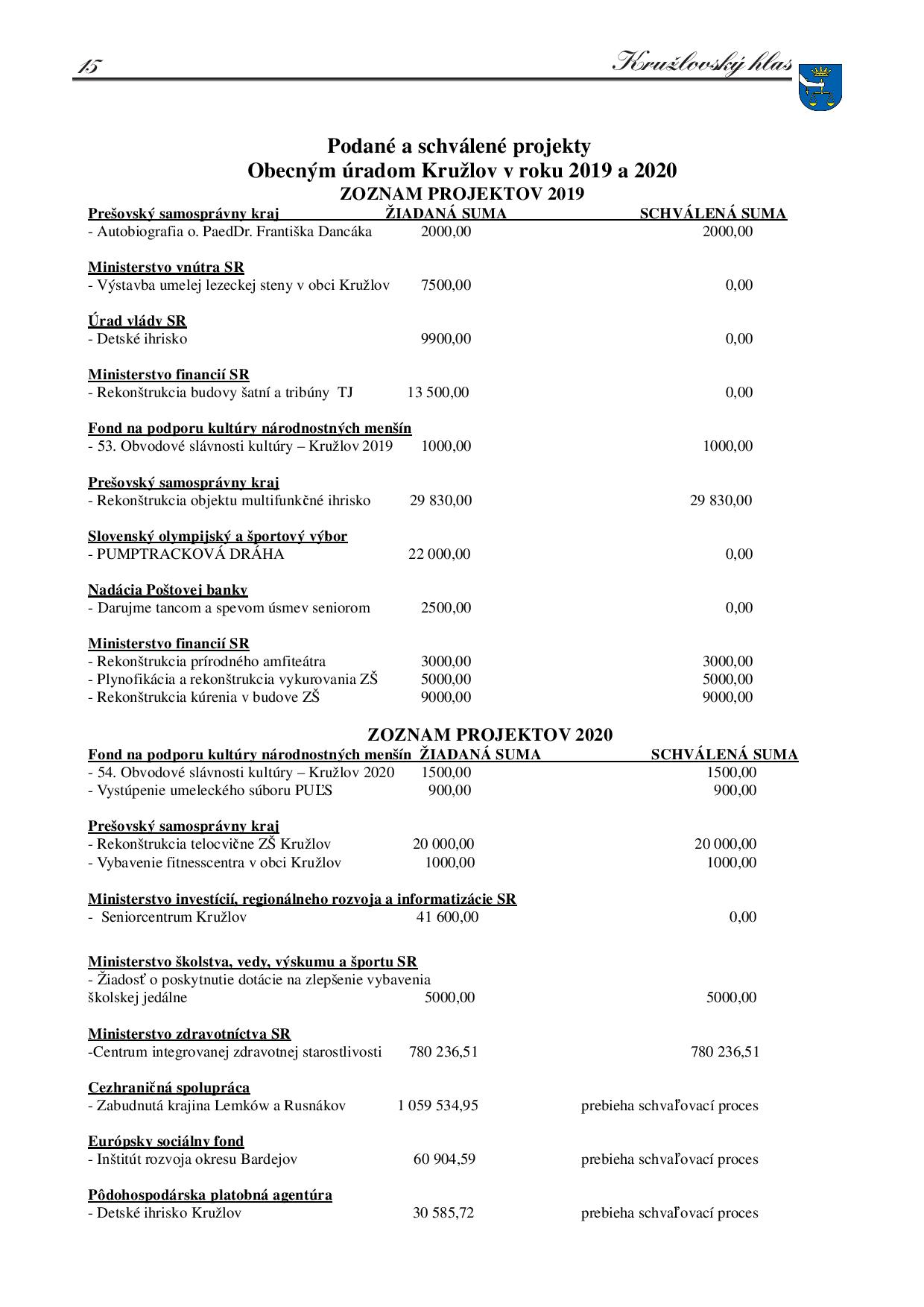 Obecným úradom Kružlov v roku 2015: