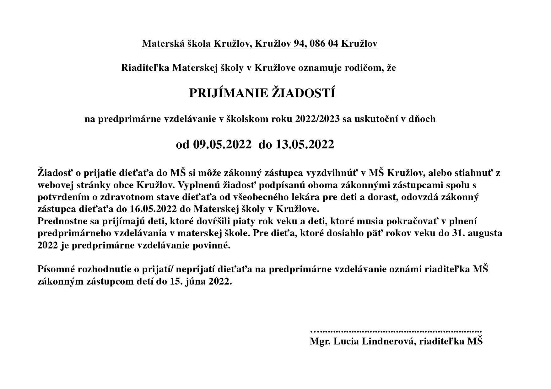 Vopred ďakujeme za akúkoľvek formu súčinnosti.