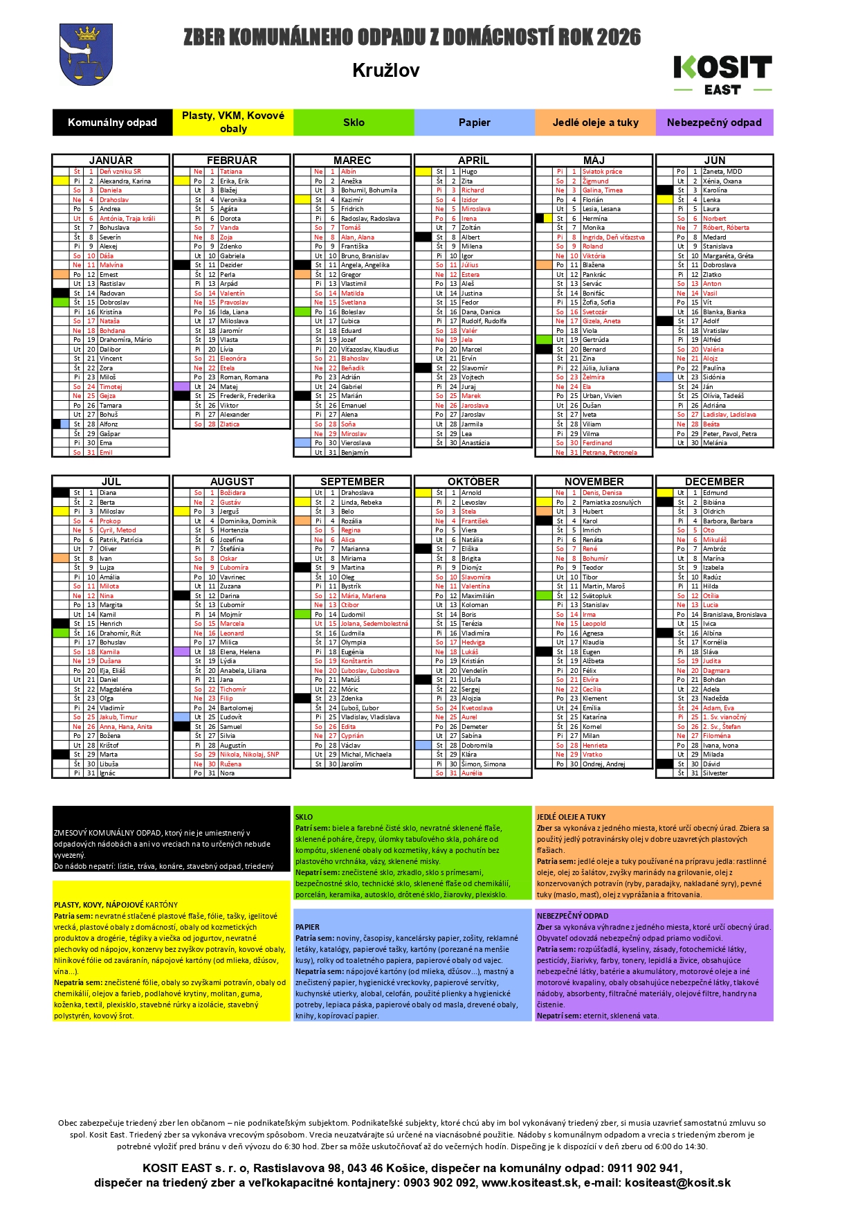 Spoločnosť KOSIT EAST oznamuje, že vývoz skla naplánovaný na 15.1.2026 nebude uskutočnený z dôvodu poveternostných podmienok, náhradný termín bude 20.1.2026.