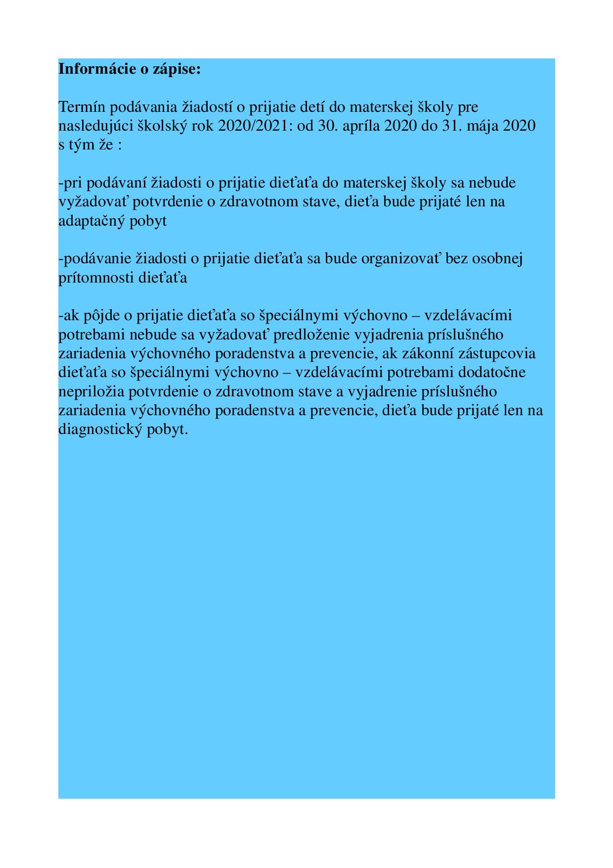 • Informácie pre Vás
