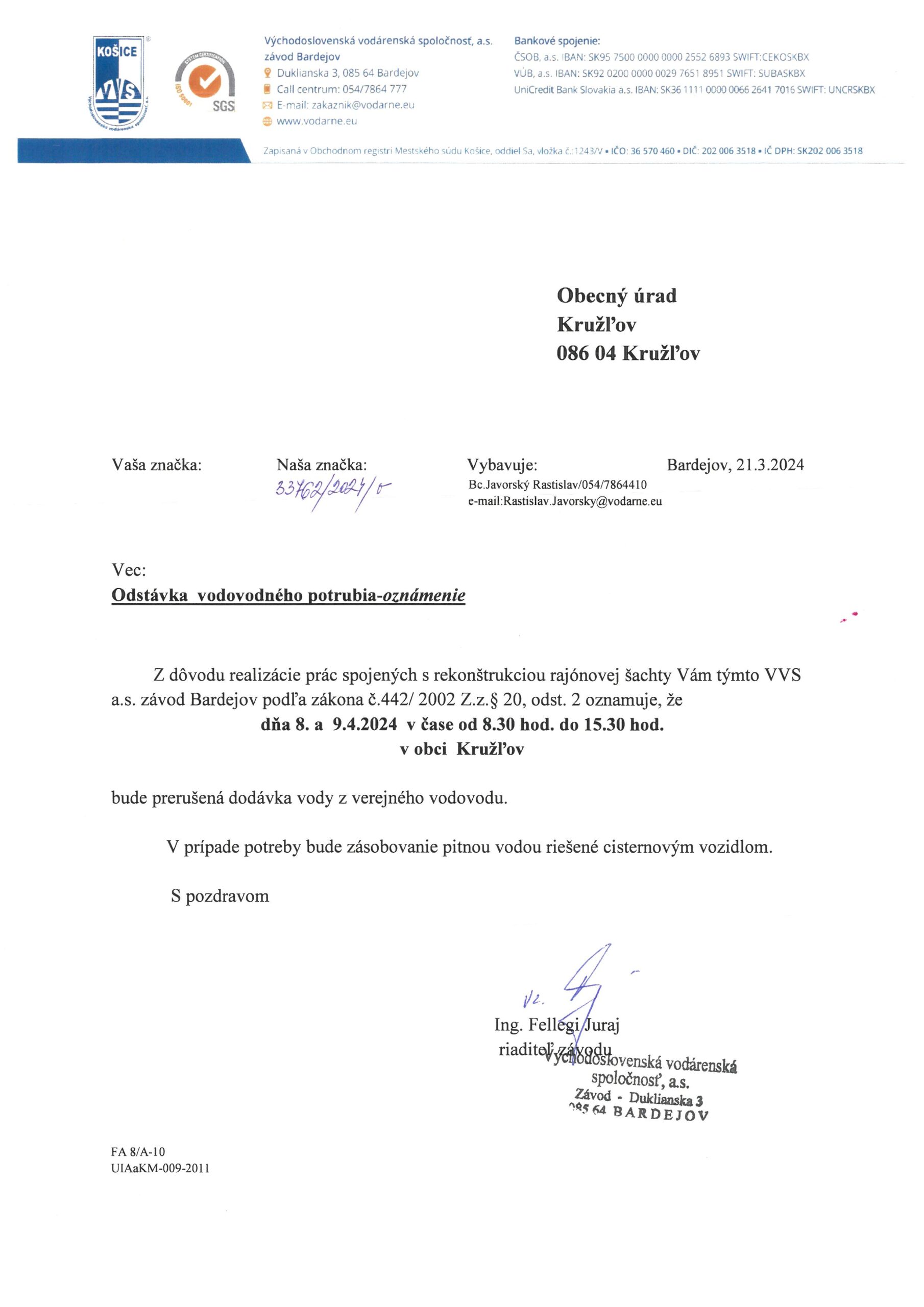 VÝCHODOSLOVENSKÁ DISTRIBUČNÁ, a. s. BUDE V NAŠEJ OBCI VYKONÁVAŤ ODPOČET ELEKTRINY 6.-7.5.2024 (PONDELOK, UTOROK). PRETO PROSÍME O SPRÍSTUPNENIE ELEKTROMEROV A ZABEZPEČENIE PSOV.
